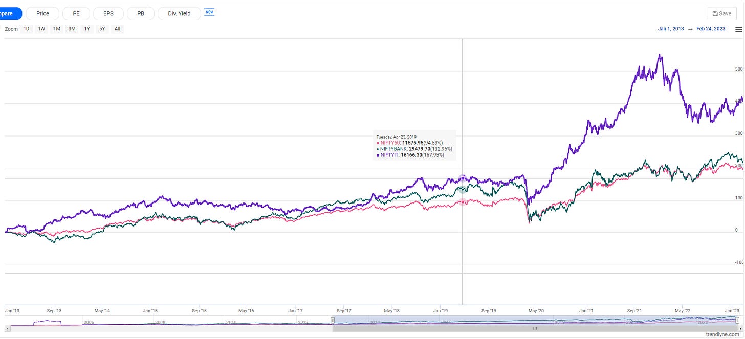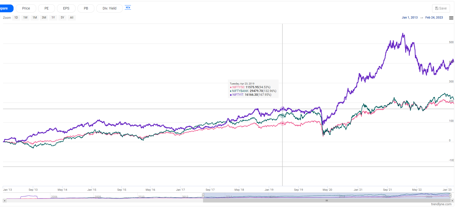 So what does it leaves us with? NIFTY IT Sector which seems to have always been outperforming the Index, across thick and thin, and therefore if one has to explore an alternate index to NIFTY 50, NITFY IT Index is probably the only index that one can consider.
